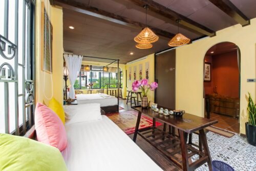 You enjoy amazing views of the hustle of traffic, unique old houses, and daily life of sounds to indulge yourself in the typical traditional atmosphere of a Vietnam Home with very Vietnamese Decorations, Wooden Ceilings, and Tile Roofs.